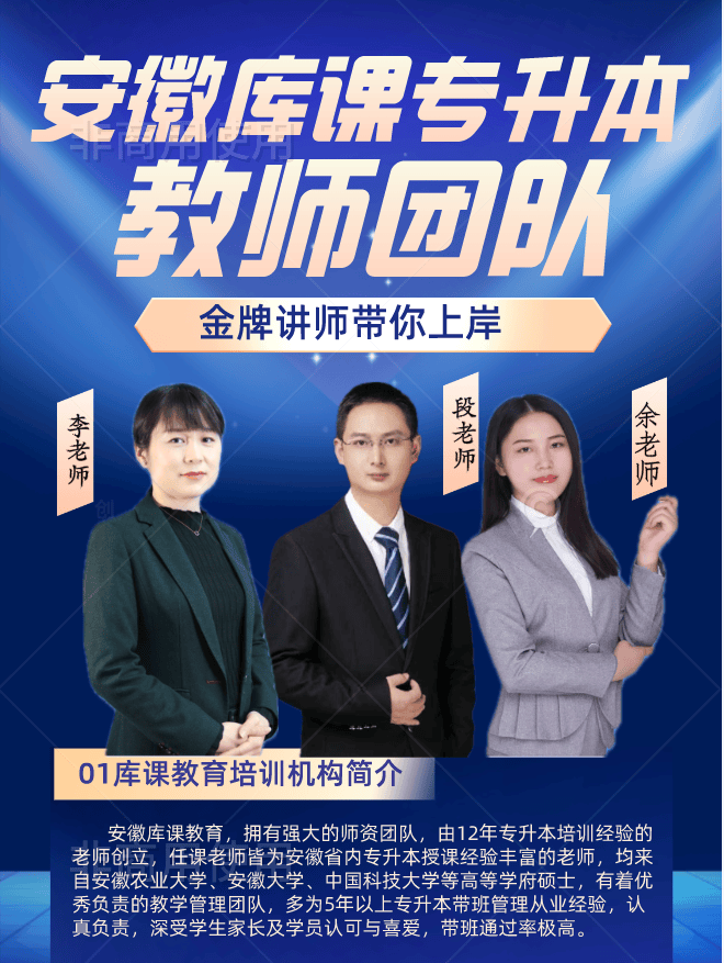 安徽库课专升本(合肥经开校区)的师资团队针对安徽审计职业学院考生的专业需求,形成 “公共课名师 + 专业课专家 + 行业导师” 的三维教学团队,核心师资包括: