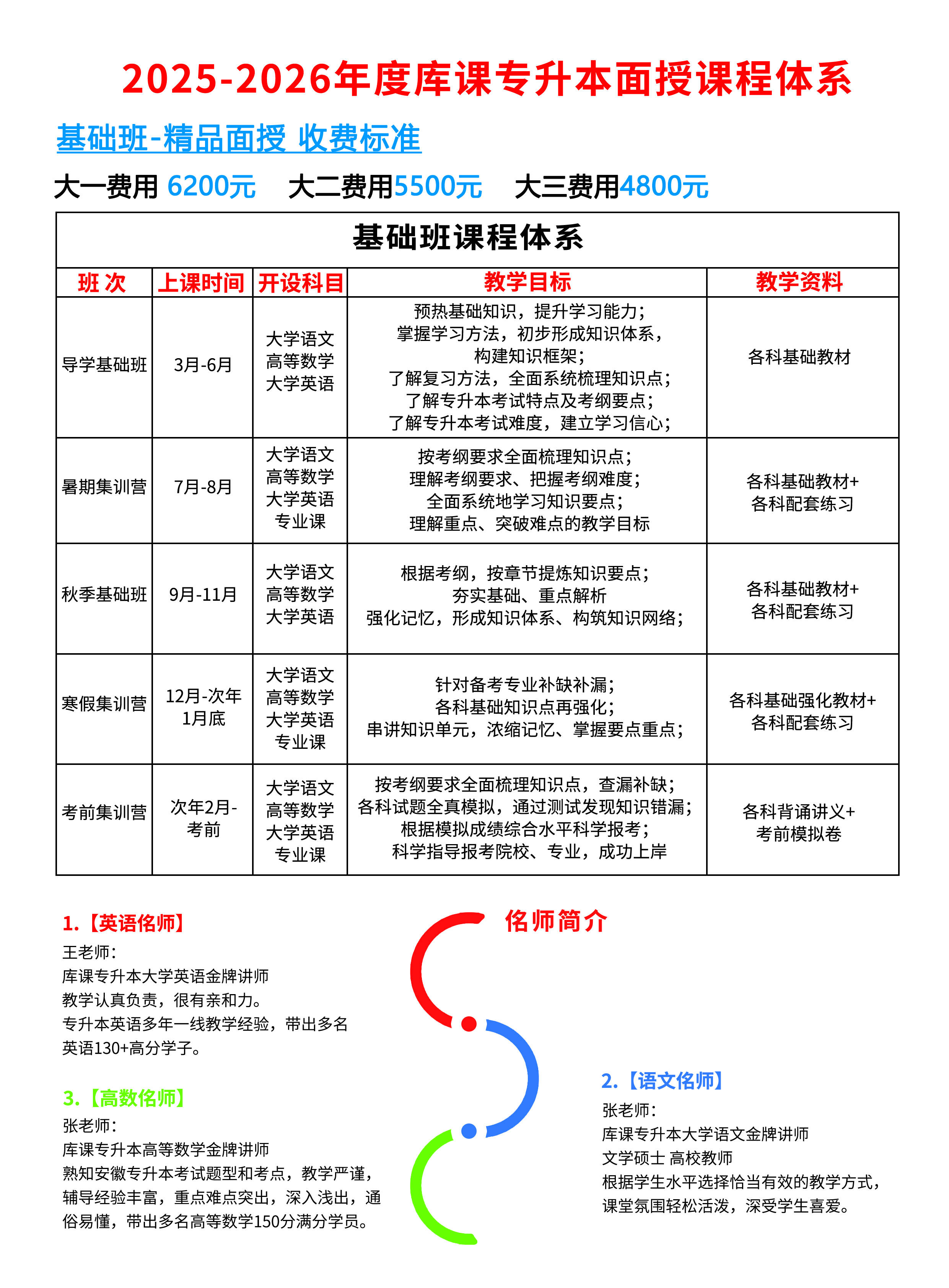 安徽库课专升本(合肥经开校区)围绕安徽审计职业学院考生的专业特点、备考时间、基础水平,设计了 4 类核心班型,费用透明且性价比突出: